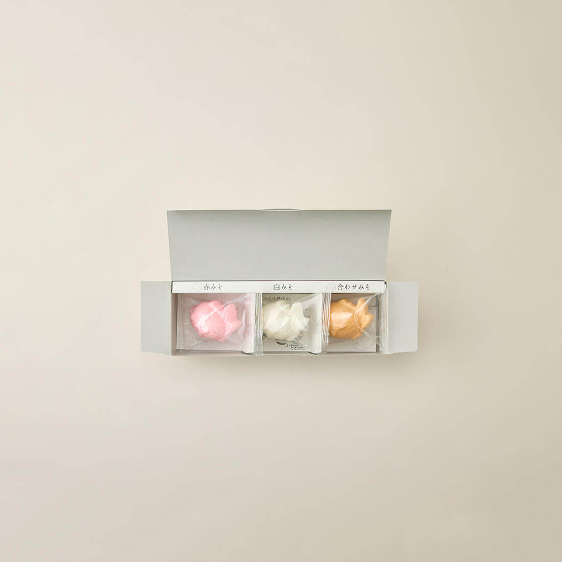 | セット内容 | みそ汁最中(赤みそ・白みそ・合わせみそ)各13g |