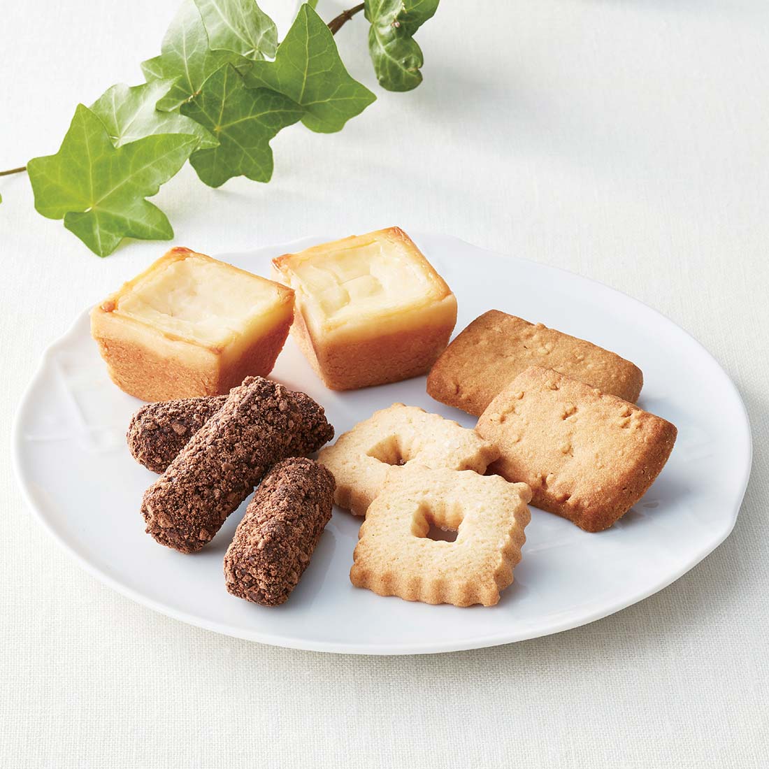 | セット内容 | ラ・ガナシュ×14(ノワール×8、ブラン×6)、ビスキュイ×8(キャラメル・シュクレ×各3、キャラメリゼ×2)、チーズケーキ×4 |