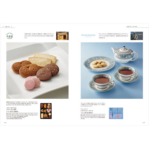 | 掲載アイテム例 | 秋田県桧山産 特別栽培米自然乾燥の桧山こまち / 五島美豚 すき焼き、しゃぶしゃぶ用セット / ふらのベーコン、ウインナーギフト / 鹿児島黒豚角煮缶詰 / 静岡掛川深むし茶 / 〈新潟・ゆのたに〉 銘水杵つきもち / 〈新潟・尾畑酒造〉 真野鶴 / 〈大阪・鶴屋八幡〉和菓子詰合せ / 〈東京・なだ万〉和風スープ / ギフトセット / 〈岐阜・千代菊〉超特選純米大吟醸 / 〈佐賀・田嶋ハム工房〉こだわりハム、ソーセージ詰合せ / 焼菓子セット(クッキー・ガレット) / 〈東京・浅草今半〉牛肉佃煮詰合せ / 漬魚詰合せ / 静岡 川根煎茶 / 佐賀・熊本県産 デコポン / 〈ラ・メゾン・デュ・ショコラ〉チョコレート&フィナンシェセット / 〈大阪・やまつ辻田〉香辛料詰合せ / 海鮮づくし |
