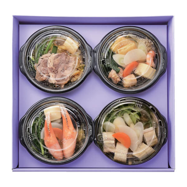 素材の風味を引き立てた小鍋の詰合せです。レンジ調理可能な食べきりサイズで、簡便性・保存性に優れた鍋の詰合せです。
