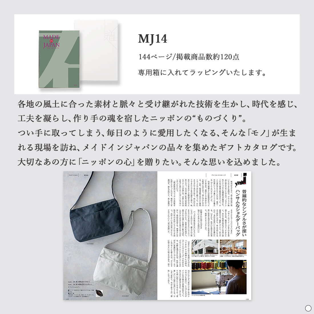 TOP > 商品カテゴリー > カタログギフト > 日本のものを集めたカタログ > MADE IN JAPAN(メイドインジャパン) > メイドインジャパン/冊子カタログ > MADE IN JAPAN(メイドインジャパン) カタログギフト <MJ14>