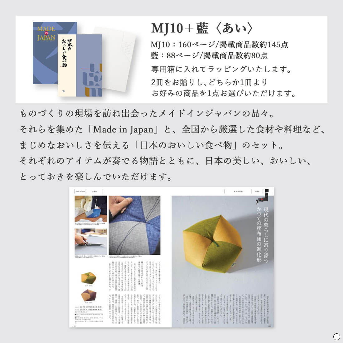 TOP > 商品カテゴリー > カタログギフト > 日本のものを集めたカタログ > MADE IN JAPAN(メイドインジャパン) with 日本のおいしい食べ物 <MJ10+藍(あい)> 2冊より選べます