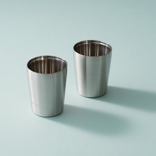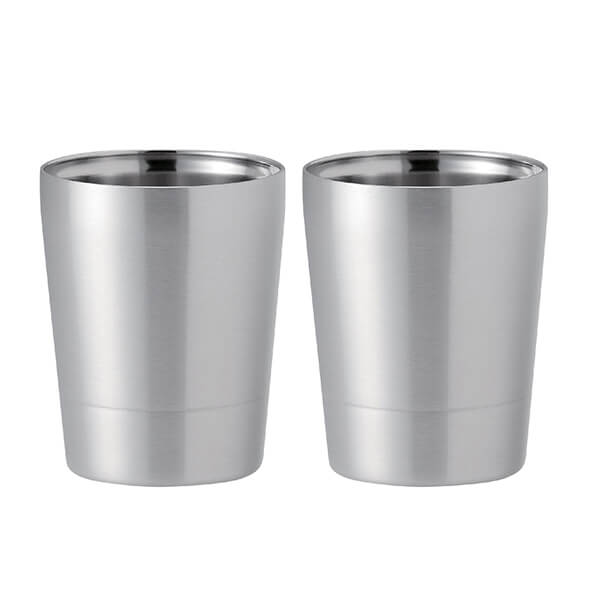 二重カップペアは、ステンレス二重構造で保温・保冷に優れ、内面にミラー仕上げを施した見た目にも美しいカップです。※電子レンジ不可。