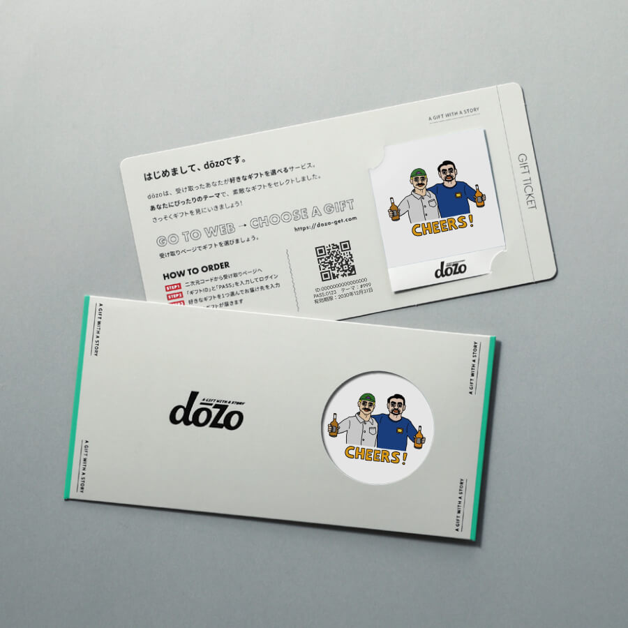 dōzoは、相手にぴったりのギフトを「テーマ」というカタチで贈るチケット型ギフト。もらった人は、チケットの二次元コードからWEBサイトに進み、5~8点の選択肢からほしいギフトを1点選びます。お申し込みから5~14日ほどで、dōzoオリジナルパッケージに入ったギフトが届きます。
