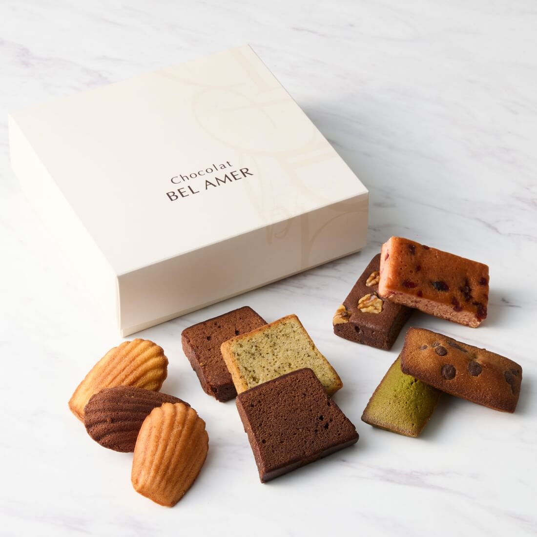 伝統的な焼き菓子をベルアメール風にショコラでアレンジしました。 人気の焼き菓子10個入りの詰め合わせ。