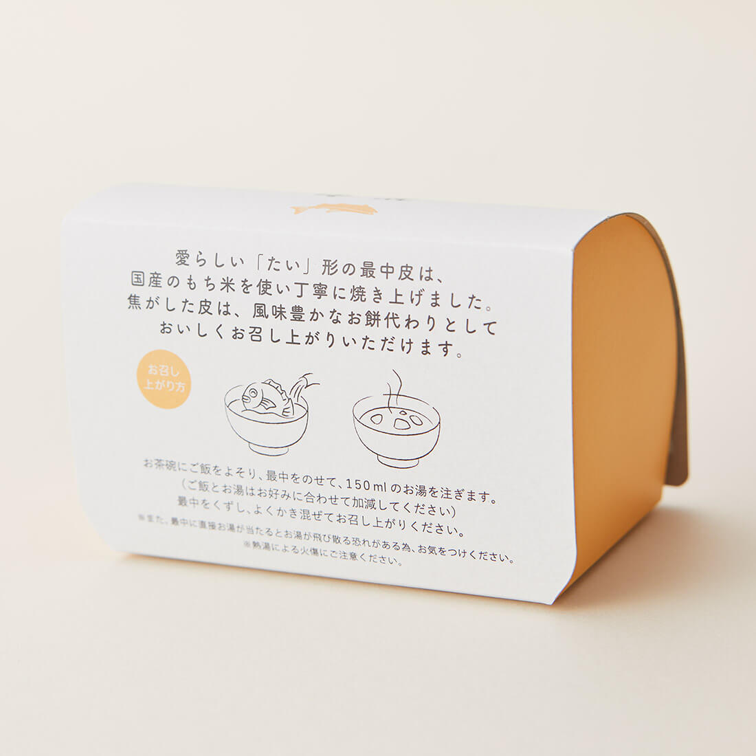 ふっくら可愛い鯛のもなかで、美味しいお茶漬けを包みました。みんなに、しあわせ、とどけタイ、ギフトです。