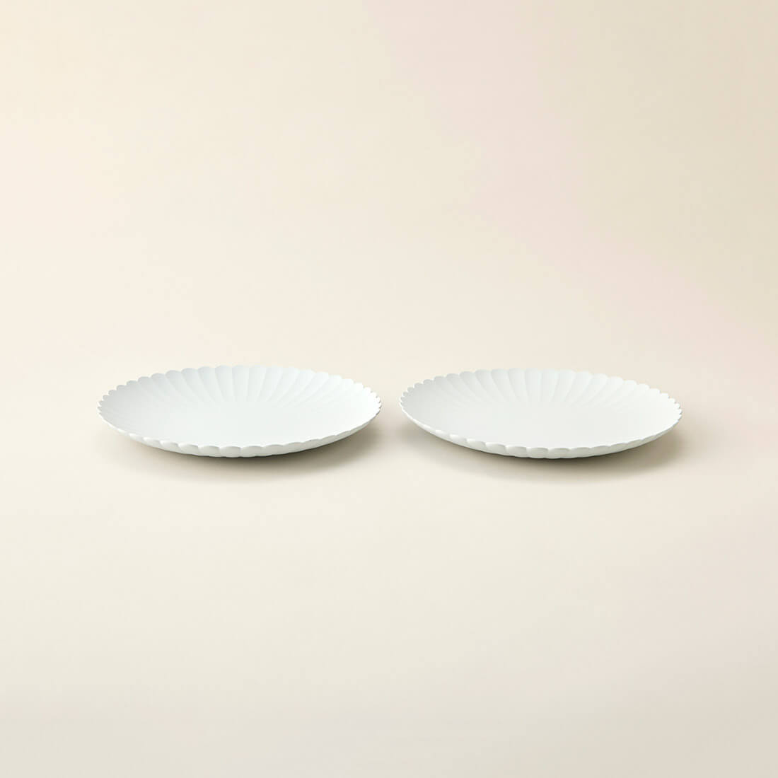「1616 / arita japan」は、1616年に陶祖、李参平によって日本で最初に陶磁器が作られたとされる佐賀県・有田で、クリエイティブディレクターの柳原照弘氏と百田陶園が立ち上げた陶磁器ブランド。その名には「今日までの有田焼の歴史と対話をしながら、新たな物語をつなぐ」という思いが込められ、有田焼の伝統を踏襲しながらも、これまでの有田焼とは異なるデザインアプローチを試みています。代表作である「パレスプレート」は、多様な食生活に対応するスタンダードなデザインを目指し、用途を限定しないフレキシブルな形に。強度のある高密度の陶土を用いることで電子レンジやオーブンにも対応しています。ライトグレーのマットな質感が上品な雰囲気を醸し出しています。華美でない洗練された美しい菊の形は、職人により一点一点丁寧に仕上げられています。