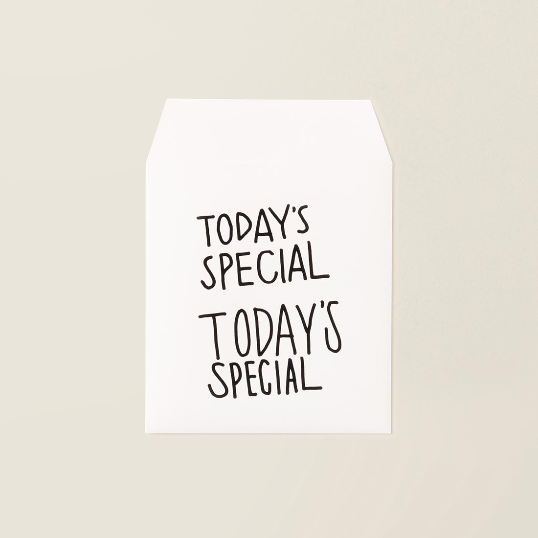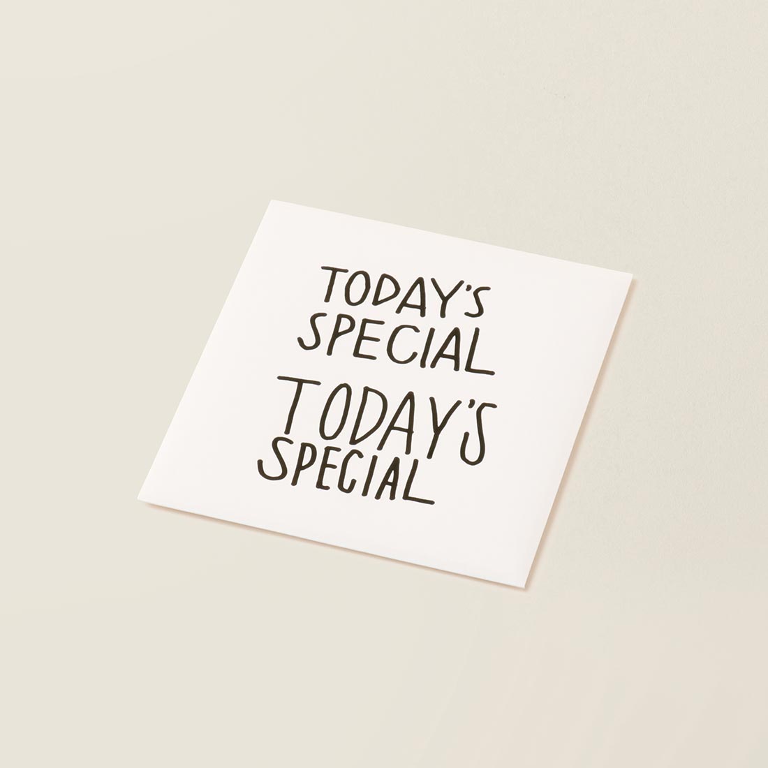 今日の特別を贈る。レストランでよく目にする「今日のおすすめ」。その日に採れた活きのよい食材で、今日来られるお客さまの顔を思い浮かべながらつくられる一皿。そんな「今日の特別」に出会ってもらえるようにと想いを込めました。