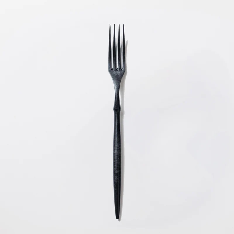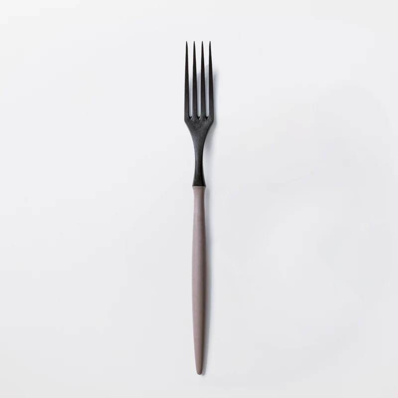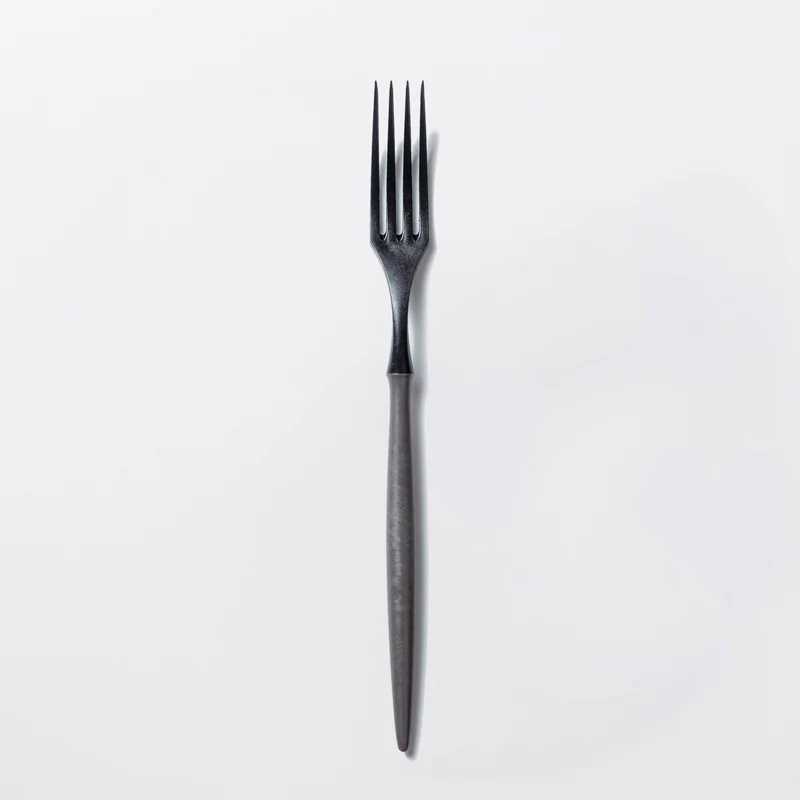 軽量で手にフィットするうえ、口に運びやすいスマートなフォルム。先端が細いので転がったり潰れたりしがちなミニトマトにもスッと刺さり、パスタやステーキなど幅広い料理と好相性です。付け根部分に段差をつけた「ザグリ形状」により、汚れがたまりにくく洗いやすいのもポイント。全長約21cmのディナーフォークサイズです。