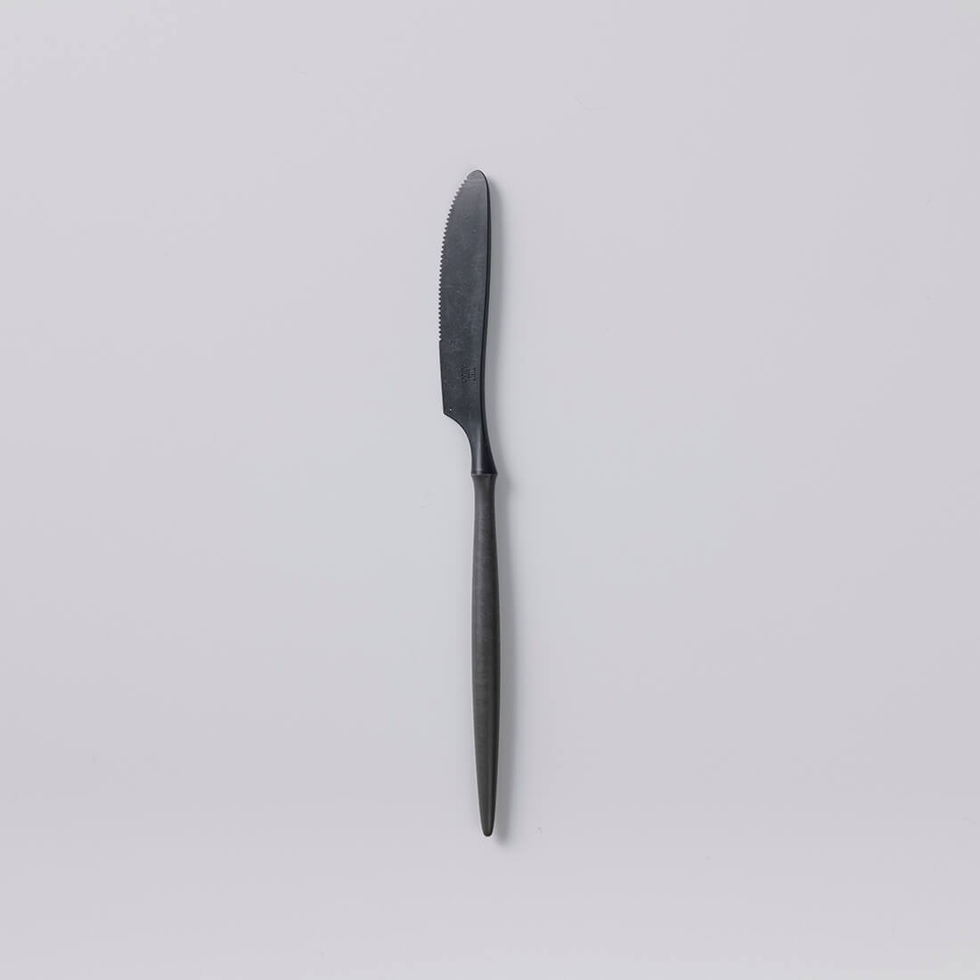 細身のスマートなフォルムで、軽く扱いやすいのが特長。丸みのあるハンドルが手にしっくりと馴染む、全長約24cmのディナーナイフです。のこぎりの歯を参考にして切れ味を研究したため、分厚いステーキ肉も切ることができます。