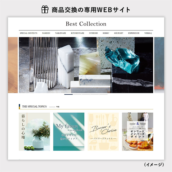 | カタログギフト/掲載商品等 | 各コースの詳細は以下よりご確認ください。 ・ベストコレクション タイム ・ベストコレクション イベリス ・ベストコレクション カモマイル ・ベストコレクション ペパーミント ・ベストコレクション キャラウェイ ・ベストコレクション セントポーリア |