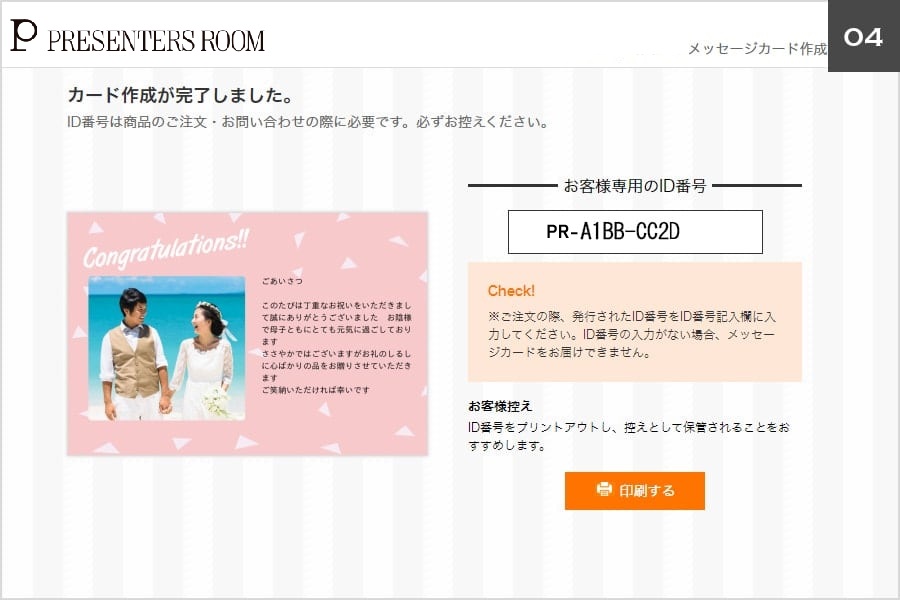 カード作成が完了すると「お客様専用のID番号」が発行されます。