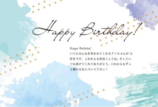 あとはメッセージを自由に入力するだけで、あなただけのオリジナルメッセージカードが完成です。(オリジナルメッセージカードのサイズは、ハガキサイズ(タテ100mm×ヨコ148mm)となっております。)